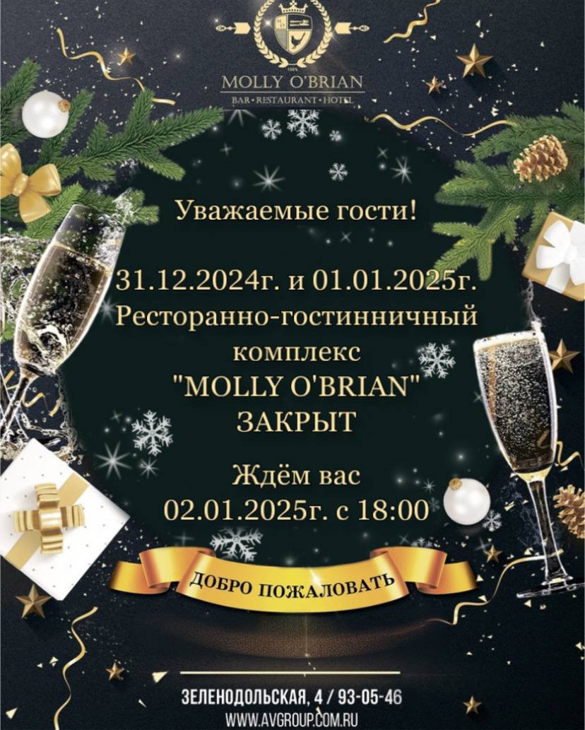 Насладитесь европейским уютом, не покидая Ханты-Мансийска! Фешенебельный ресторан Molly O'Brian, расположенный в одном из самых живописных мест нашего города, с первых минут позволяет окунуться в незабываемую атмосферу ирландского темперамента и английской утонченности.